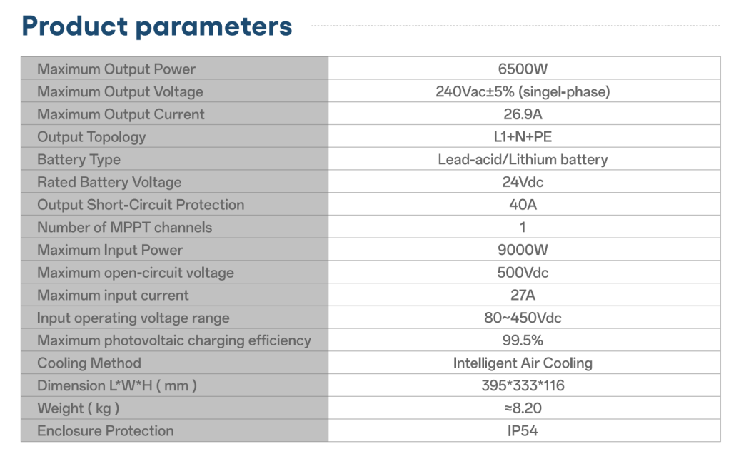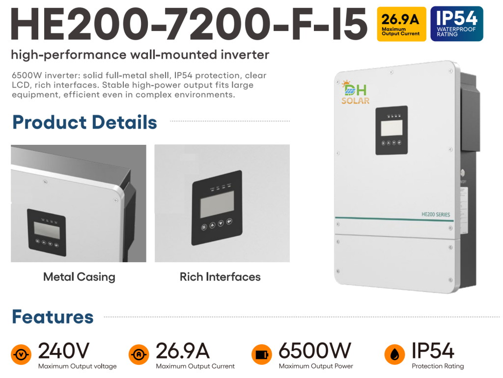 240V 26.9A 6500W IP54 High Performaced Wall-mounted Inverter 240V 26.9A 6500W IP54 High Performaced Wall-mounted Inverter 240V 26.9A 6500W IP54 High Performaced Wall-mounted Inverter 6500W inverter:solid full-metal shell,IP54 protection,clearLCD,rich interfaces.Stable high-power output fits largeequipment,efficient even in complex environments. INQUIRY CONTACT US Please enable JavaScript in your browser to complete this form.Your Name *Your Email *Your Company *Your Message *PhoneSend Message Product Details