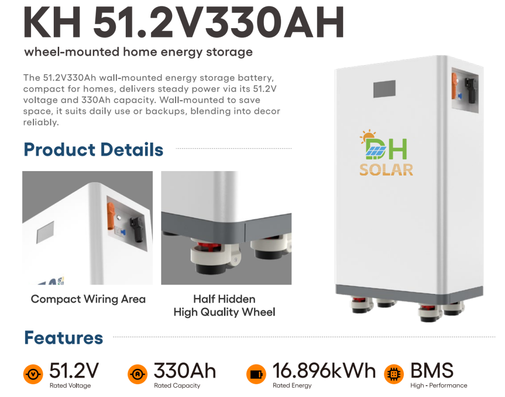 51.2V 330Ah Wheel-mounted home energy storage 51.2V 330Ah Wheel-mounted home energy storage 51.2V 330Ah Wheel-mounted home energy storage The 51.2V330Ah wall-mounted energy storage battery,compact for homes,delivers steady power via its 51.2Vvoltage and 330Ah capacity.Wall-mounted to savespace,it suits daily use or backups,blending into decorreliably. INQUIRY CONTACT US Please enable JavaScript in your browser to complete this form.Your Name *Your Email *Your Company *Your Message *CommentSend Message Product Details